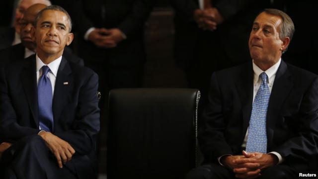 “Đây không phải là điều mà người dân Mỹ nghĩ là có thể ưng ý được. Ông không có tên trên lá phiếu giữa kỳ. Chủ toạ Hạ viện John Boehner của đảng Cộng Hòa cũng có một giọng điệu hòa giải sau khi đạt được thỏa thuận về ngân sách. Tổng thống Mỹ Barack Obama và Chủ tịch Hạ viện John Boehner tại điện Capitol ở Washington Vào cuối năm 2013.